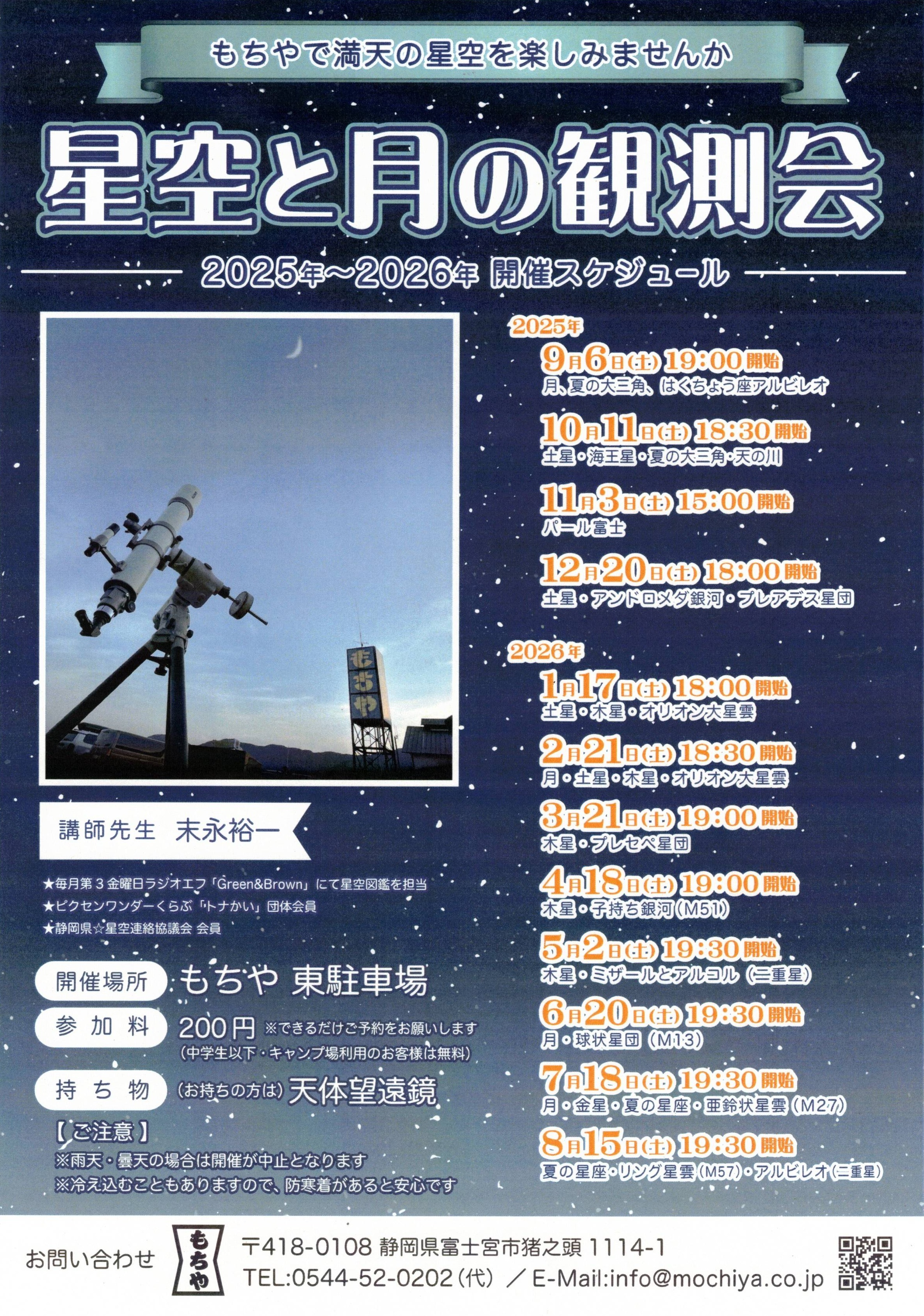 星空と月の観察会、次回は12/20(土)開催予定です。